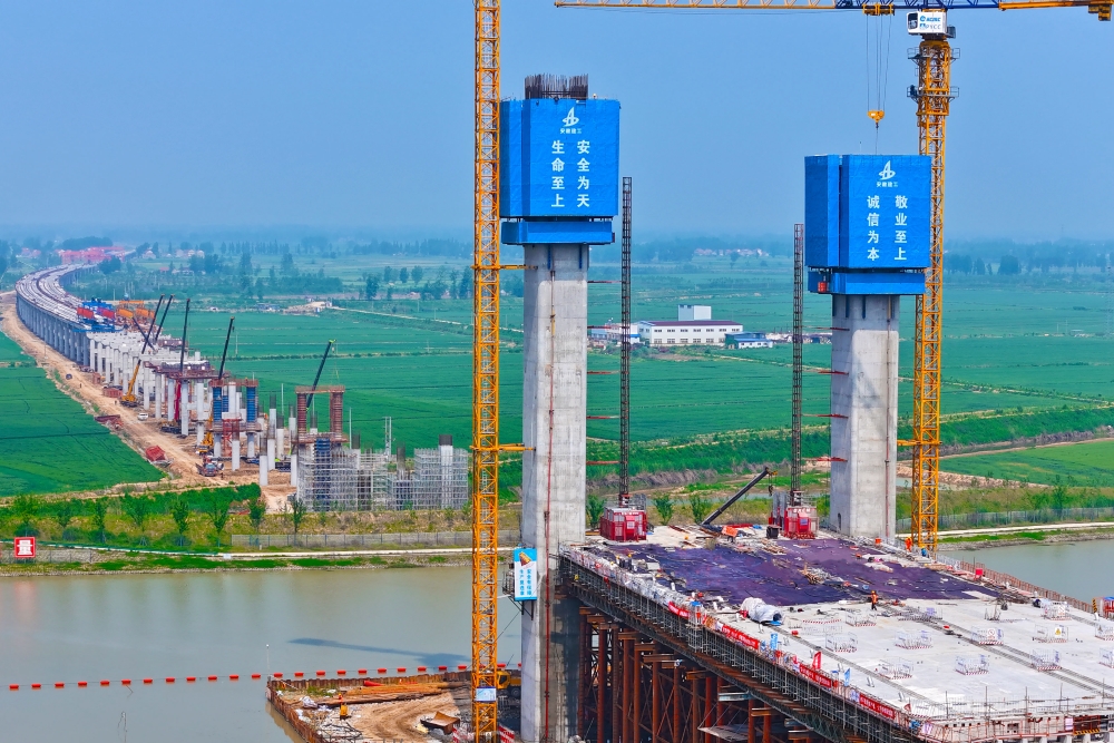 【路橋“競”行時(shí)】S16合周高速4標(biāo)東淝河大橋項(xiàng)目主橋邊跨現(xiàn)澆箱梁澆筑完成