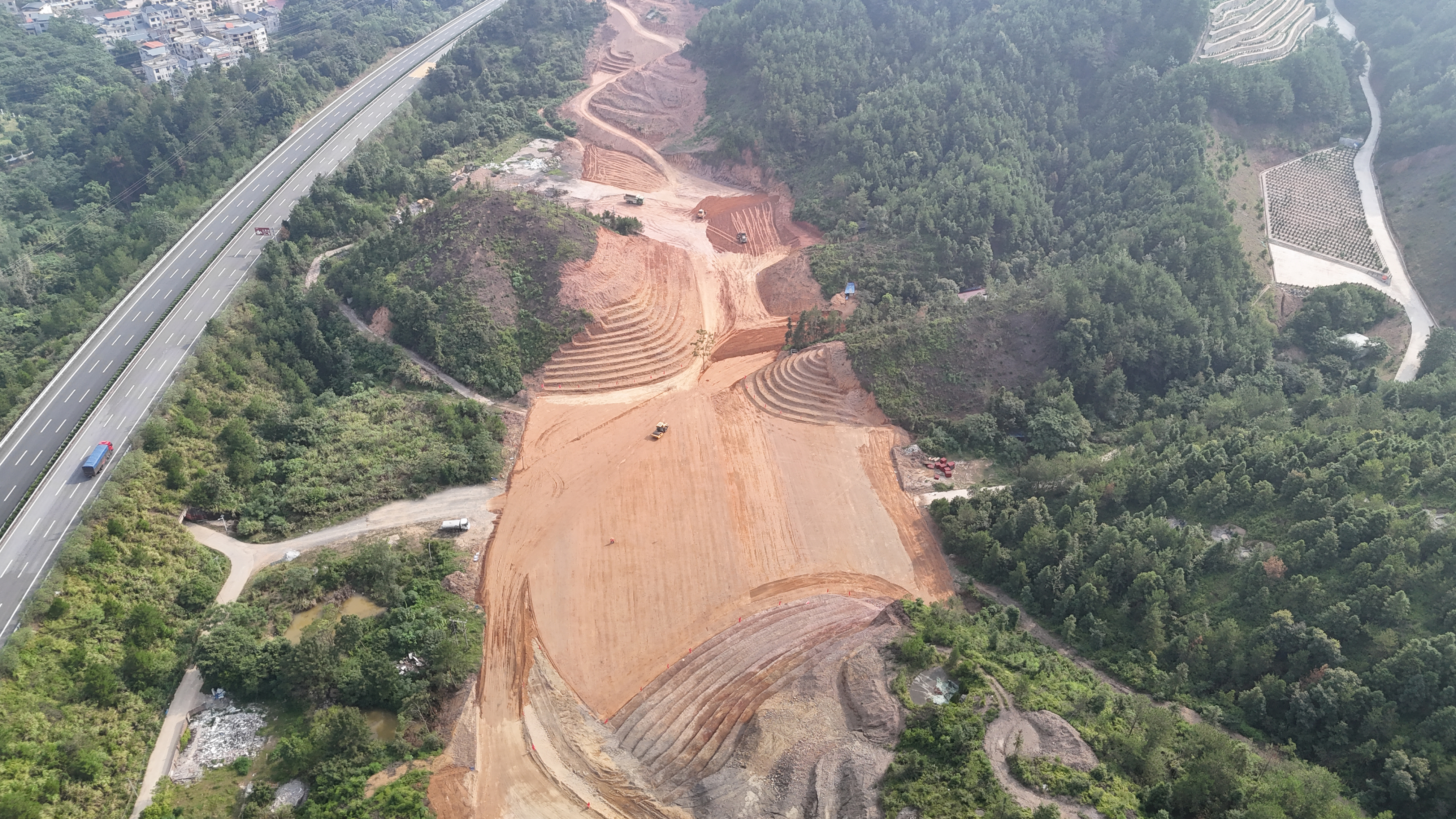 在當(dāng)前大范圍路基施工中,項(xiàng)目部嚴(yán)抓施工標(biāo)準(zhǔn)化。路塹臺(tái)階開(kāi)挖嚴(yán)格遵循“分層開(kāi)挖、逐層放坡”原則,科學(xué)控制開(kāi)挖深度和坡度,保障邊坡的穩(wěn)定性和安全性。路基填筑嚴(yán)格執(zhí)行“分層填筑、分層碾壓”標(biāo)準(zhǔn),層層控制填料厚度和壓實(shí)度,確保路基結(jié)構(gòu)均勻性與整體穩(wěn)定性。項(xiàng)目力求在每一道工序中體現(xiàn)標(biāo)準(zhǔn)化理念,確保工程經(jīng)得起時(shí)間和質(zhì)量的雙重考驗(yàn),樹(shù)立起品質(zhì)工程的新標(biāo)桿。