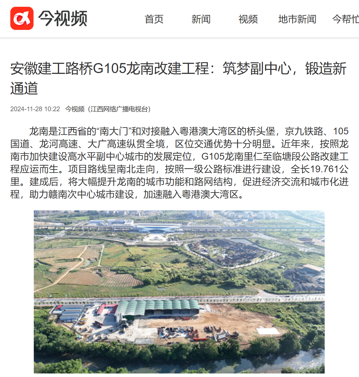 【名媒聚焦】江西網(wǎng)絡(luò)廣播電視臺(tái):安徽建工路橋G105龍南改建工程:筑夢(mèng)副中心,鍛造新通道