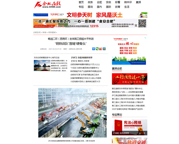 人民網(wǎng)【新春走基層】專欄報道了該項目大年三十工地不打烊,參建人員持續(xù)奮戰(zhàn)在施工一線。中國日報海外版《End of the road》、合肥日報《“鋼鐵戰(zhàn)隊”首啃“硬骨頭”》報道了公司第二次對老舊匝道橋拆除工作的場景。安徽衛(wèi)視超級新聞場等媒體以《“鋼鐵戰(zhàn)士”組隊 南二環(huán)改造工程第二階段施工啟動》報道了南二環(huán)改造工程順利進入第二階段施工節(jié)點的訊息。學習強國合肥學習平臺、澎湃新聞以《合肥:暢通南二環(huán) 鉚足干勁 大干正酣》為題,合肥新聞聯(lián)播以《“步履不?!北惩?nbsp;建設(shè)按下“快進鍵”》《過年堅守南二環(huán) 來年道路早暢通》為題,報道了春節(jié)期間該項目施工現(xiàn)場干出的“加速度”。抖音等自媒體平臺以短視頻形式展示了數(shù)十臺機械同時作業(yè)的震撼場面,關(guān)注熱度超過3百萬,安徽路橋速度得到合肥市民的再次點贊。